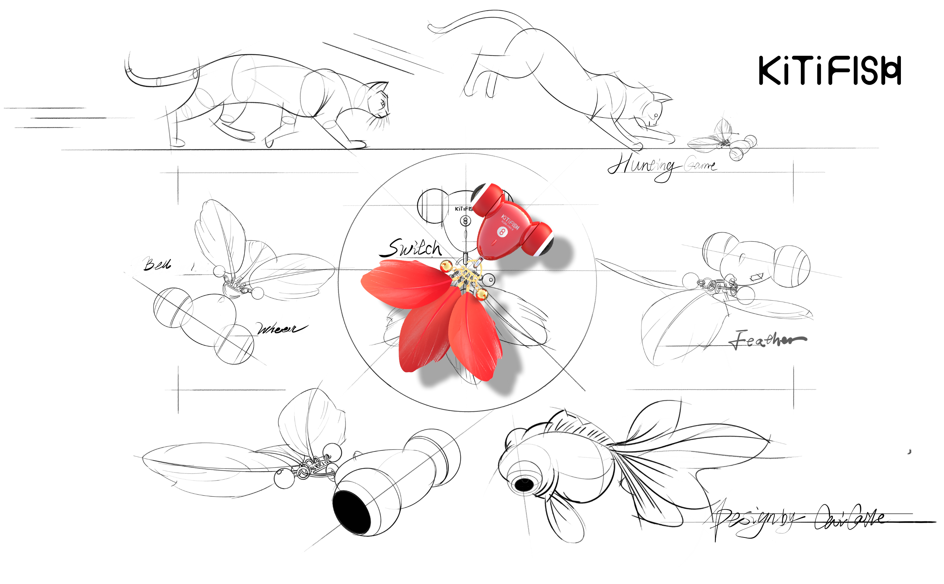 KiTiFISH is an innovative and automatic cat toy, spinning, swimming, and twirling just like a real goldfish. Bells and flowing feathers add an extra dose of thrill, giving your cat the ultimate hunting experience. After 5 minutes of play, it automatically goes into sleep mode and reactivates when your cat paws at it.