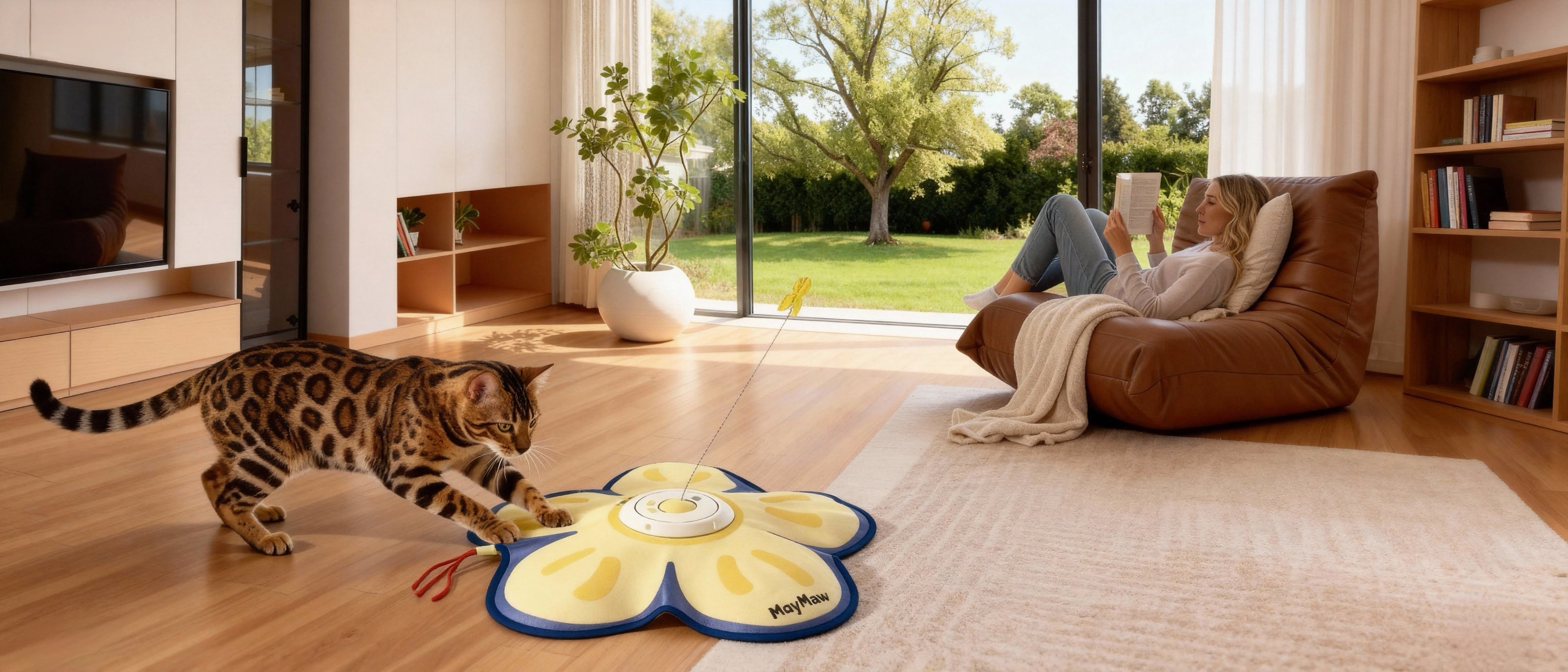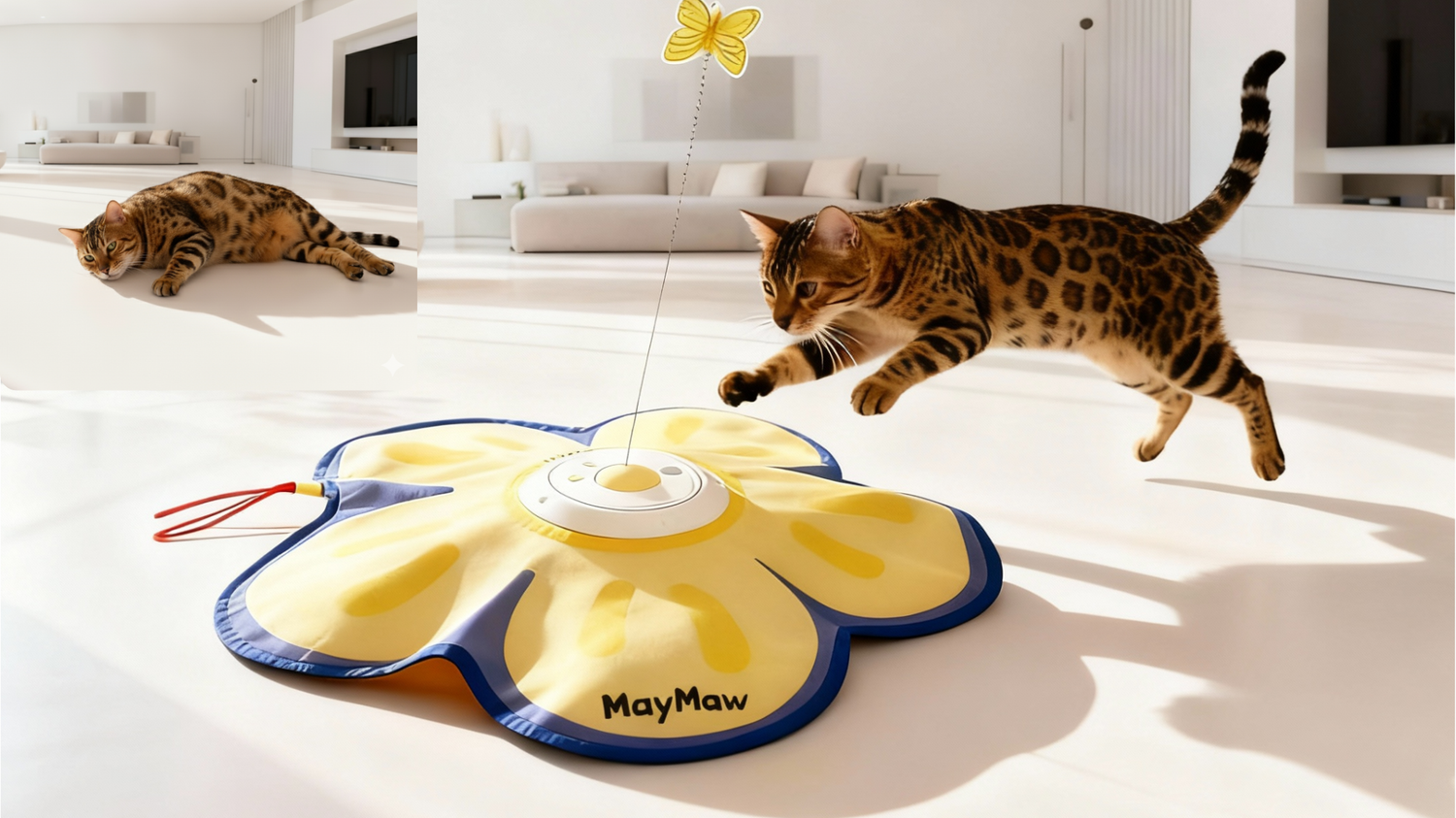 Triggers their natural prey drive with a floating butterfly and a hiding tail. It’s mental and physical stimulation that stops boredom before it starts.